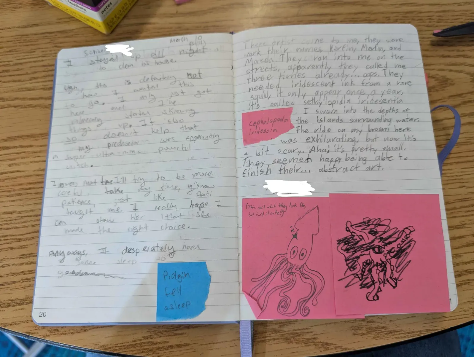 - Use Post-It notes in the journal to take bullet-point notes about the conversation as it goes on if you need help keeping track of information before turning it into fictional journal entries.